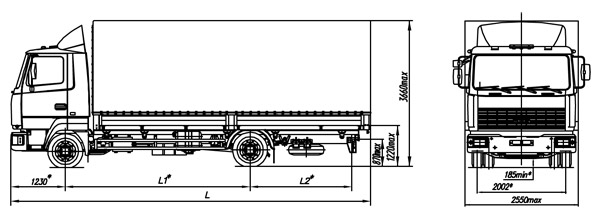 Технические характеристики бортового автомобиля МАЗ-4371W1-422-000