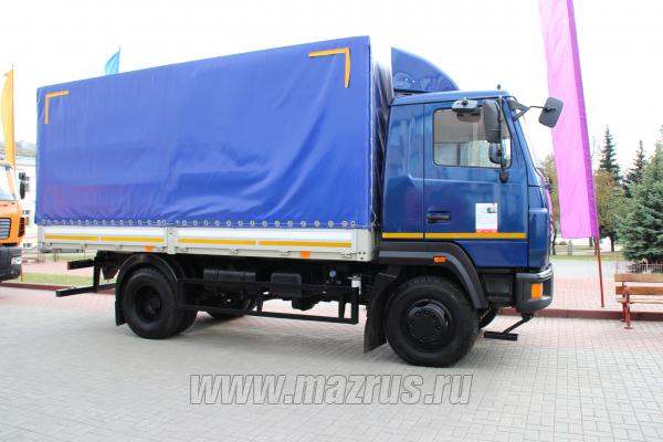 Автомобиль-бортовой (среднетонажный) МАЗ-4381N2-522-000 (Евро-5) тентованный, с колёсной формулой 4х2, предназначен для городских и пригородных перевозок различных грузов. Отличительной особенностью автомобилей МАЗ является: надёжность, комфортабельные условия работы у водителя, низкие эксплуатационные расходы, современный дизайн, большой выбор моделей и комплектаций, применение узлов и агрегатов мировых производителей автомобильных компонентов таких, как ZF, Shaanxi Fast Gear, Cummins, Mersedes, ЯМЗ, ММЗ и т.д :