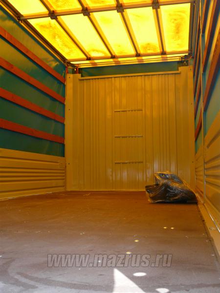 - Платформа бортовая, тентованная с задним пологом, объемом V- 38,74 м3, площадь платформы 15,25 м2, внутренние размеры платформы 6150х2480х2540 мм, борта стальные в базе;