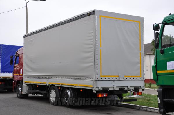 Автомобиль-бортовой (многотоннажный) МАЗ-6310Е9-520-031 (Евро-5) тентованный, с колёсной формулой 6х2 ( один ведущий мост, вторая ось вспомогательная для увеличения грузоподъемности ), предназначен для городских и междугородних перевозок различных грузов, возможно использование в составе автопоезда . Отличительной особенностью автомобилей МАЗ является: надёжность, комфортабельные условия работы у водителя, низкие эксплуатационные расходы, быстрая окупаемость, современный дизайн, большой выбор моделей и комплектаций, применение узлов и агрегатов мировых производителей автомобильных компонентов таких, как ZF, Shaanxi Fast Gear, Cummins, Mersedes, ЯМЗ, ММЗ и т.д :