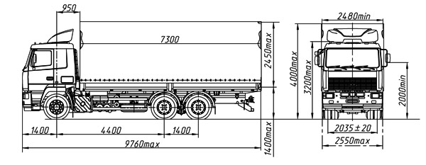 | Размеры бортовой платформы, мм | 7300x2480x2450 |