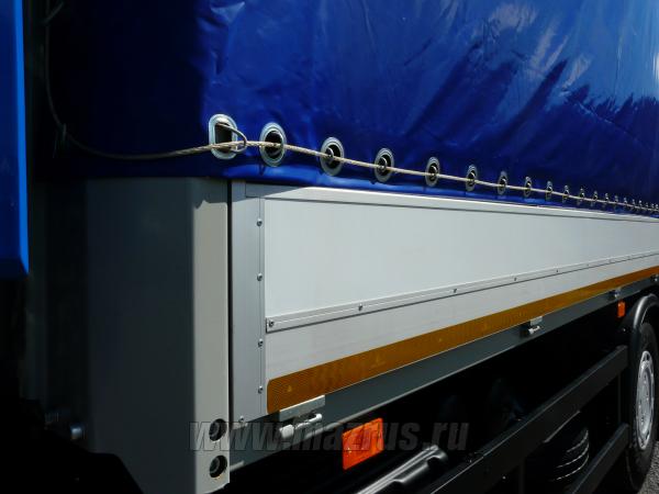 - Платформа бортовая, тентованная, с задним пологом, объемом V- 45 м3, площадь платформы 19 м2, внутренние размеры платформы 7300х2480х2450 мм, борта стальные в базе;