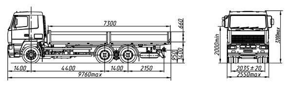 | Размеры бортовой платформы, мм | 7300x2480x660 |