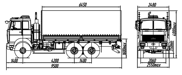 | Размеры бортовой платформы, мм | 6450х2480х2295 |