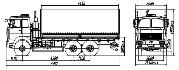 | Размеры бортовой платформы, мм | 6450х2480х2295 |