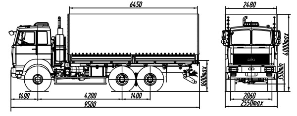 | Размеры бортовой платформы, мм | 6450х2480х2295 |
