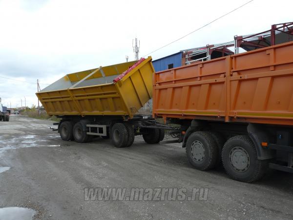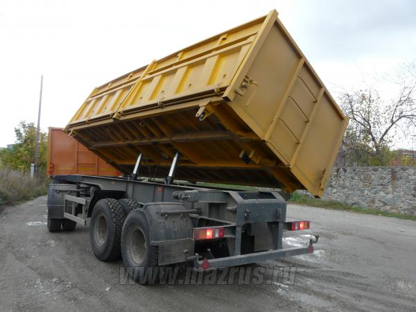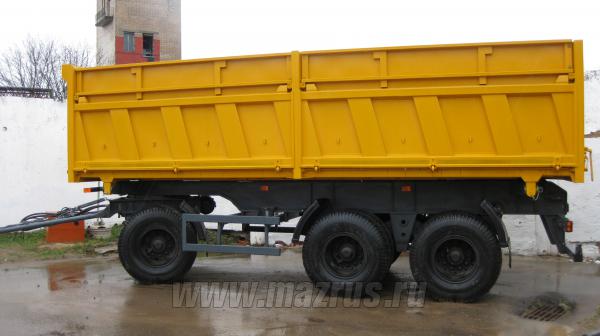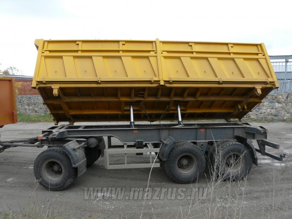Прицеп самосвальный с двухсторонней боковой разгрузкой МАЗ-856102-010 : 3-х осный.,двухскатный., Г/п-21 тн., АБС., V-22 м3., внутренние размеры 6660х2320х1450мм. Кузов металлический , разгрузка боковая двухсторонняя, механизм опрокидования кузова-гидравлический с приводом от гидросистемы автомобиля. Предназначен для перевозки различных сыпучих и сельскохозяйственных грузов .