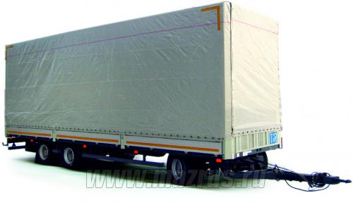 Материал тента: ткань тентовая импортная (светопроницаемый). Задняя откидная дуга шириной 130 мм. Тент шторного типа фирмы «Ringfeder VBG» Германия.