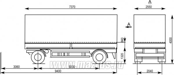 Борт задний металлический, высотой 660 мм, Т-образные запоры, крючки увязочного каната. Возможна установка алюминиевых, либо сэндвич-панели «МАЗ-Купава».