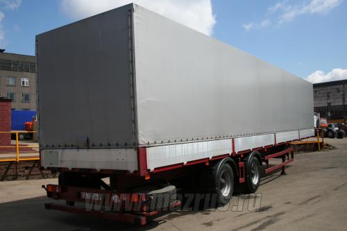 Полуприцеп бортовой МАЗ-931010-2020 : 2-х осный., односкатный., подвеска рессорная., оси МАЗ., Г/п-22,7 тн., высота ССУ 1340мм., нагрузка на ССУ-9,4 т., АБС., внутренние размеры 13620х2480х660мм., шины 385/65R22.5., Пол из ламинированной фанеры 27мм., борта стальные., откидные. Соответствует требования TIR для перевозки различных грузов в системе транзитных перевозок МДП в составе автопоезда.