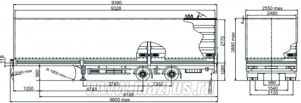 | Размеры, мм | 9600х2550х3380 |