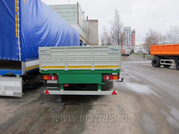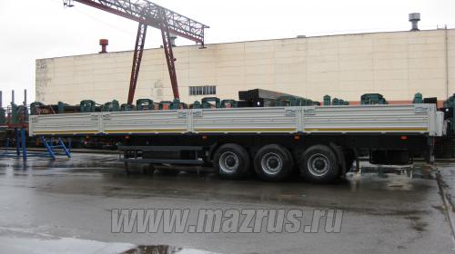 Полуприцеп бортовой МАЗ-975800-2010 : 3-х осный., односкатный., пневмоподвеска., Г/п-27,4 тн., высота ССУ-1250мм., нагрузка на ССУ-10,5т., АБС., внутренние размеры 13485х2460х700мм., шины 385/65R22.5., Пол из ламинированной фанеры 27мм., борта металлические., откидные. Соответствует требования TIR для перевозки различных грузов в системе транзитных перевозок МДП в составе автопоезда.