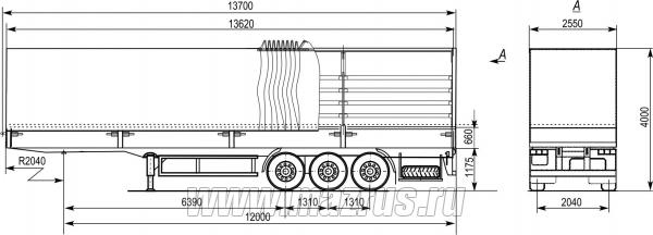Откидной задний борт высотой 656 мм, изготовлен из пустотелых алюминиевых профилей, с двумя стяжными болтами и Т-образными задвижными запорами фирмы «Hesterberq» Германия. Возможна установка Сэндвич-панелей «МАЗ-Купава».