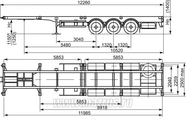 | Высота седельно-сцепного устройства горизонтально стоящего ненагруженного полуприцепа | max 1250 мм |