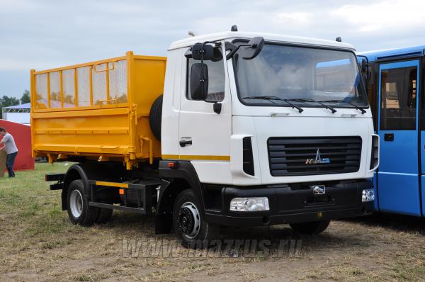 Автомобиль-самосвал МАЗ-4571N2-525-000 (Евро-5) с 3-х сторонней разгрузкой, с колёсной формулой 4х2, предназначен для перевозки различных строительных и сельскохозяйственных сыпучих грузов. Отличительной особенностью автомобилей МАЗ является: надёжность, комфортабельные условия работы у водителя, низкие эксплуатационные расходы, современный дизайн, большой выбор моделей и комплектаций, применение узлов и агрегатов мировых производителей автомобильных компонентов таких, как ZF, Shaanxi Fast Gear, Cummins, Mersedes, ЯМЗ, ММЗ и т.д :
