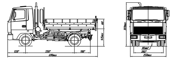 - распределение технически допустимой общей массы: на переднюю ось 3800 кг, на задний мост 6300 кг, задняя подвеска рессорная 6,3 т;