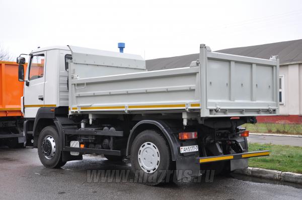 Автомобиль-самосвал МАЗ-5550С5-580-021 (Евро-5) с 3-х сторонней разгрузкой, с колёсной формулой 4х2, предназначен для перевозки различных строительных сыпучих грузов в составе автопоезда. Отличительной особенностью автомобилей МАЗ является: надёжность, комфортабельные условия работы у водителя, низкие эксплуатационные расходы, современный дизайн, большой выбор моделей и комплектаций, применение узлов и агрегатов мировых производителей автомобильных компонентов таких, как ZF, Shaanxi Fast Gear, Cummins, Mersedes, ЯМЗ, ММЗ и т.д :