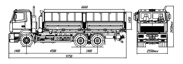 - объём кузова 22 м3, П- образная платформа прямоугольного типа с боковой разгрузкой с распашными бортами, платформа без подогрева выхлопными газами;