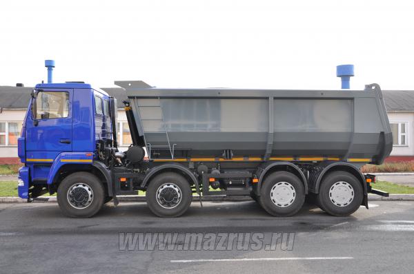 Автомобиль-самосвал МАЗ-6516Е8-520-000 (Евро-5) с задней разгрузкой, U-образная платформа , с колёсной формулой 8х4, предназначен для перевозки различных строительных сыпучих грузов. Отличительной особенностью автомобилей МАЗ является: надёжность, комфортабельные условия работы у водителя, низкие эксплуатационные расходы, современный дизайн, большой выбор моделей и комплектаций, применение узлов и агрегатов мировых производителей автомобильных компонентов таких, как ZF, Shaanxi Fast Gear, Cummins, Mersedes, ЯМЗ, ММЗ и т.д :