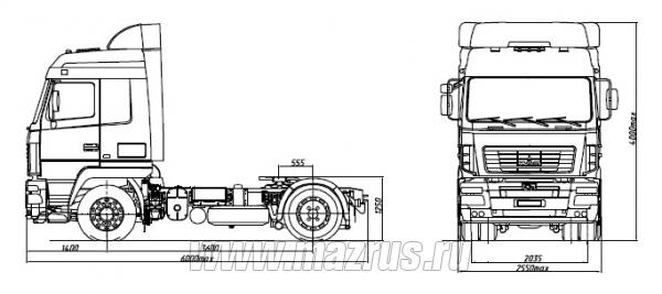 - Распределение технически допустимой общей массы: на переднюю ось 7050 кг, на задний мост 11500 кг;