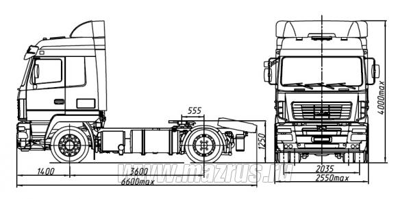 Технические характеристики седельного тягача МАЗ-5440E8-520-030 Евро-5