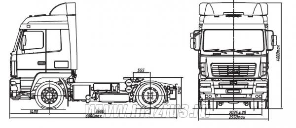 - Распределение технически допустимой общей массы: на переднюю ось 7100 кг, на задний мост 11500 кг;