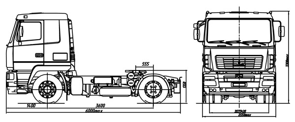 - Распределение технически допустимой общей массы: на переднюю ось 6300 кг, на задний мост 11500 кг;