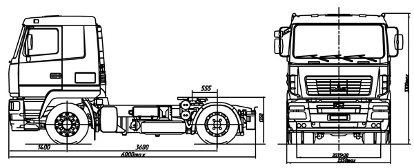 - Распределение технически допустимой общей массы: на переднюю ось 6300 кг, на задний мост 11500 кг;