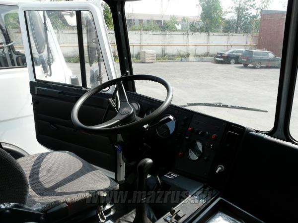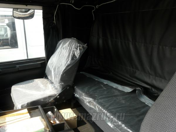 - Кабина 6422 большая, 2-х местная с двумя спальными местами ( кабина со спальником ), неподрессоренная, с разрезным лобовым стеклом, сиденье водителя подрессоренное на пневматической подвеске, рулевая колонка регулируется в двух плоскостях, выдвинутый передний бампер под круглые фары;