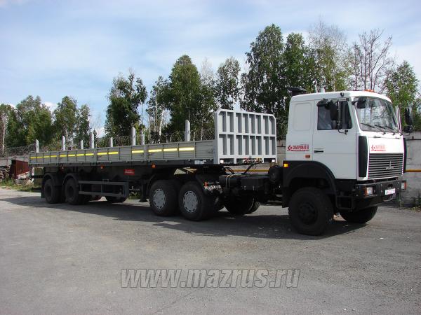 1) Полуприцеп МАЗ-938660-044Р3 ( 2-х осный, двухскатный, г/п-27,5 т, внутренние размеры 12190х2420х500 мм, с защитным передним бортом и раздвижными кониками ).