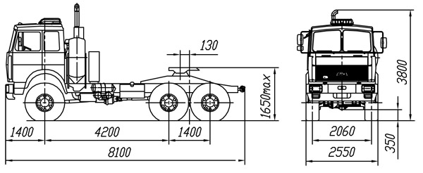 - Высота ССУ над уровнем дороги 1650 мм, нагрузка на ССУ-18 т, ССУ под шкворень размерности 3,5 дюйма;