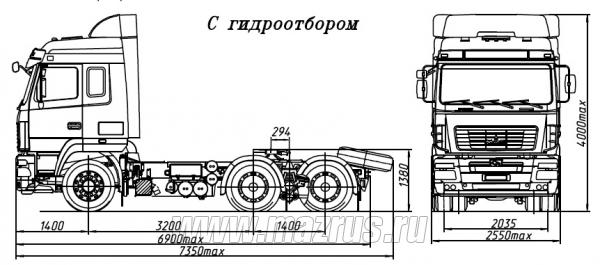 - Распределение технически допустимой общей массы: на переднюю ось 7300 кг, на задний мост 26000 кг;