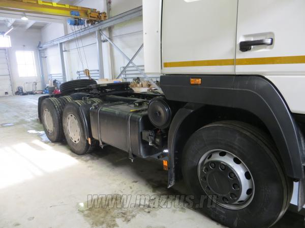 - На автомобиле установлен дизельный двигатель Mercedes OM 501 LA. V ( Daimler Chrysler ) – это 6-цилиндрованный силовой агрегат с V- расположением цилиндров, предназначенный для установки на грузовые автомобили, выполняющие перевозку различных тяжелых грузов, мощность 435 л.с ( 320 кВт ), максимальный крутящий момент Нм-2100 при 1400 об / мин , Евро-5 ( производитель Mercedes-Benz ), рабочий объём двигателя составляет12 литров, на двигателе установлена система подачи топлива Common Rail (производства GRS Bosch) c максимальным давлением впрыска до 160 МПа и система cелективной каталитической нейтрализации газов (SCR) c применением AdBlue ( мочевина ), для нормальной эксплуатации данного двигателя установлен следующий регламент периодичности замены масла и фильтров ( ТО-0 в районе 2 000 км, ТО-1 в районе 45000 км, ТО-2 в районе 90000 кми последующие ТО с интервалом в 45000 км), контрольный расход топлива на 100 км составляет 25 литровпри скорсти 60 км/ч и 27 литровпри скорсти 80 км/ч, заявленный ресурс двигателя составляет 1 000 000 км