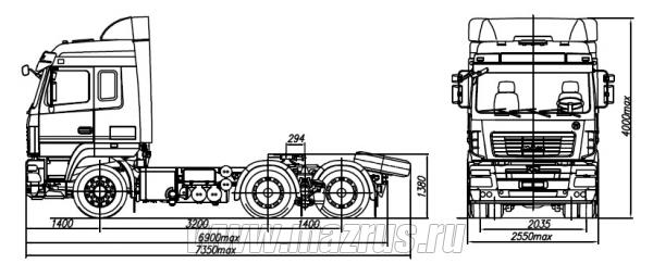 - Распределение технически допустимой общей массы: на переднюю ось 6900 кг, на задний мост 26000 кг;